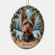 A beautiful, ultra-detailed Christmas design featuring a realistic portrait of the breed centered within a soft, festive winter frame. This elegant design includes pine branches, red berries, and snowflakes against a snowy backdrop, illuminated by warm holiday lighting. The balanced, round composition includes clear space below the dog for customization.