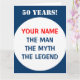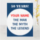 Big extra large oversized Birthday card for men. Personalized The man The myth The legend greeting card. Humorous card idea for over the hill father, husband, dad, uncle, grandpa, brother, stepdad etc. Personalizable age and name. ie for fiftieth / 50th Birthday, fifty year old guy. Big extra large size. Humor slogan.