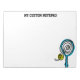 Personalized tennis notepad for player and coach. Sporty note pad with racquet and ball design. Custom office and school supplies. Large size with big writing area.