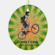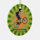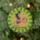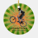 Extreme Biker's Personalized Ornament Christmas 20XX. A biker doing a wheelie against a green and orange starburst background. All text customizable, front and back!