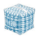 Personalized Birth Record Blue Plaid Cloud Pattern Pouf