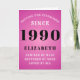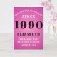 Personalized pink birthday card for those born in 1990. Easily customize the text to the front and the interior of this birthday card using the template provided. Part of the setting standards range of greeting cards.
