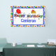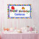 Prime colors red, blue, yellow, green, orange birthday cake and balloon personalized gender neutral banner.