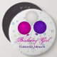 Cute purple, white and pink balloons, birthday button. Personalize by adding a name.