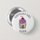 Cute pink cupcake personalized name and age Birthday Girl button.