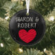 Personalized Black and Red Heart Couple Glass Ornament