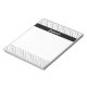 Personalized black and white polka dot pattern notepad. Black polka dots on a white background and a black band with your custom name.