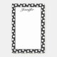 Black and white polka dotted pattern with a personalized text message in modern elegant calligraphy.