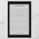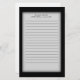 Personalized black with white translucent lined stationery with space for your name / business name and address. Text, font, font size, color and placement are completely customizable.