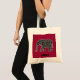 Tote bag with an elephant covered with a black and white swirl design, sitting on a red background. Background color is fully customizable. Personalize with your own text.