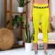 Personalized Black Bright Yellow Stripes Stylish Capri Leggings