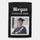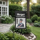 Modern and stylish 2-sided outdoor graduation garden flag features a square photo of your graduate framed in white with simple name and class year wording that can be personalized for your grad. Black background color can be modified.