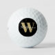 Minimalist elegant simple gold and black script custom monogram initial, letter and name, or last name, family name personalized Titleist Pro V1 Golf Balls, available in many brand options