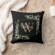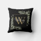 Personalized Black Gold Monogram Greenery Throw Pillow