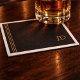 Featuring subtle gold striping and a custom monogram on rich charcoal, this design brings tailored, lounge-inspired sophistication to any table. Perfect for milestone birthdays, whiskey tastings, bachelor parties, corporate events, or elevated game nights at home.