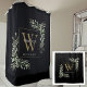 Personalized Black Gold Monogram Watercolor Floral Shower Curtain