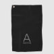 Personalized Name and Initial Golf Towel with a Custom Monogram in a trendy modern and minimal classic sans serif font for a simple, sophisticated, masculine look. Shown in black and gray, the text colors and fonts can be changed to match your golf bag.