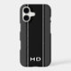 Personalized black iPhone 17 case with monogram. Elegant sleek design for him or her. Cool gift idea for dad, father, uncle, brother, husband, grandpa, friend etc. Monogrammed name letters. Modern typography. Stripe design smartphone cover.