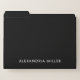 Stay organized in style with this personalized black monogram file folder. The design features your monogram in simple and stylish white font on a solid black background. The durable folder is perfect for keeping important documents, receipts, and other paperwork organized and easily accessible. Personalize with your own monogram for a customized touch.