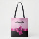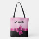 Personalized Black PINK GRADIENT Stripes PINK BOW Tote Bag