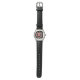- Sleek black strap with silver case