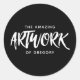 A cool black and white personalized sticker that says,"The Amazing Artwork of Gregory." Perfect for adding to the back of your artwork that your kids give away to people.Would be great for craft fairs. Customize the sticker with the name of your choice. Comes in a variety of colors. Designed for you by Blackberry Boulevard.