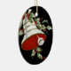 Striking red and white with gold bell on black background with green and red holly. Beautiful Vintage image. Share the Holidays with these personalized ornaments, sure to be a great conversation starter. Great christmas gift for anyone!