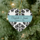 A pretty black and white damask heart shaped ornament with a printed blue contrast stitched ribbon look design. These custom ornaments that can be personalized with the bride and groom's name and special message on the back make beautiful keepsakes as wedding favors for guests or a wonderful gift for the new bride and groom. Designed by Chrissy H. Studios, LLC. All Rights Reserved.