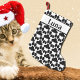 Personalized black&white cat paw pattern - stylish stocking for a well behaving cat -personalize it now with the name of your kitty .