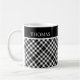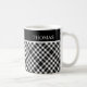 Modern black and white gingham pattern coffee mug you can easily personalize with your name in modern white typography against a black background. Perfect as a personalized Holiday or Birthday gift for him. Buffalo plaid, check or checkered pattern. If you need any help or matching products, please contact us at happydolpinstudio@outlook.com. Exclusively designed for you by Happy Dolphin Studio.
