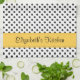 You can personalize the name on this black and white polka dots and yellow strip kitchen tea towel. To change the name, use the personalize option. A trendy and chic design.