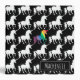 Personalized Black & White Rainbow Unicorn Pattern 3 Ring Binder. Gorgeous black and white unicorn pattern covers the front and back of this binder. One rainbow unicorn in the center stands out in watercolor brushstrokes of red, orange, yellow, green, blue and purple. Personalize with name on front. Spine has room for text and features two more beautiful rainbow unicorns. Fun, funky, stylish, modern unicorn school supplies.