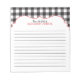Black and white buffalo plaid or gingham plaid pattern personalized notepad. Red accents. You can personalize the name on this custom notepad. Country, western design.