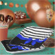 Personalized Black white Stripe Christmas Blue Bow .
