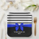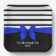 Personalized Black white Stripe Christmas Blue Bow Paper Plates