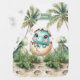Celebrate the arrival of your little one with this adorable personalized baby blanket, featuring a cute watercolor baby dinosaur hatching from an egg with the playful phrase “Hatching Soon.” Designed in soft, neutral colors, this blanket is the perfect baby shower gift for boys, combining charm, warmth, and a touch of whimsy.