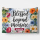 A colorful watercolor wreath of wildflowers surrounding the phrase "Blessed Beyond Measure" in beautiful, elegant bold calligraphy typography. Personalized with name.
