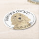 Personalized Blonde Tan Cocker Spaniel Dog Wedding Round Paper Coaster