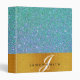Personalized Blue and Gold Faux Confetti Glitter 3 Ring Binder