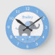 Personalized Blue and Gray Elephant Nursery Round Clock