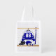 Personalized Blue and White Ice Hockey Jersey Reusable Grocery Bag
