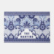 This doormat design features a traditional blue and white Mexican talavera style tile pattern. you can personalize with your name.