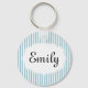 Cute personalized aquamarine blue and white striped keychain. Add your name or initials / monogram to make it your own.