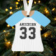 Celebrate your baseball star with this personalized blue and white pinstripe jersey ornament. Perfect for commemorating a special season, player, or team. Customize it with a name and number to create a unique keepsake.