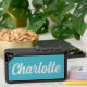 Bluetooth speakers with a blue background. Personalized with name or any custom text. To change the font, size, or color please click the button to edit the design.