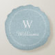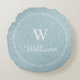 Personalized Blue Botanical Pattern Milgrain Pillow. The dotted border is reminiscent of milgrain, which is a jewelry-detailing technique often used for engagement and wedding rings. The milgrain border adds both a modern and elegant style to this pillow.