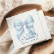 Designed for girly party supplies, these custom bridal shower napkins blend classic charm with modern flair, making them a standout addition to your fancy tea party décor. Their soft blue hue and pretty coquette style create a sophisticated yet playful vibe, perfect for wedding or baby showers alike.