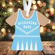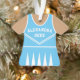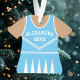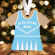 Celebrate your cheerleader's spirit with this personalized blue and white cheerleader uniform ornament. Perfect for commemorating a special season, team, or individual achievement. Customize it with a name and year to create a unique keepsake.