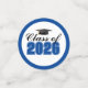 Customized blue Class of 2026 graduation confetti for a high school or college graduate party table. Cool varsity letters for the year on great custom decor for seniors.