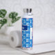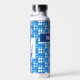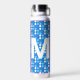 A custom water bottle for children, in blue with a pattern of dots. Personalize with your chid's name on the front and initial on the back. A stylish and useful accessory for nursery, school or days out.